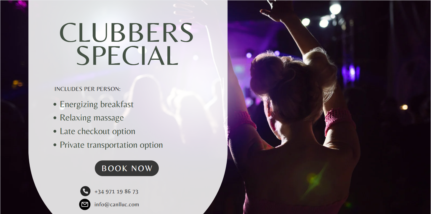 Immerse yourself in the true essence of Ibiza with Can Lluc, where rural luxury meets incomparable experiences. Whether you are looking to vibrate to the rhythm of the Ibiza nightlife or renew body and mind in an oasis of calm, our exclusive packages offer you the best of the island. Designed to satisfy your most demanding desires, each experience combines Ibicencan authenticity with the personalized service that characterizes Can Lluc.